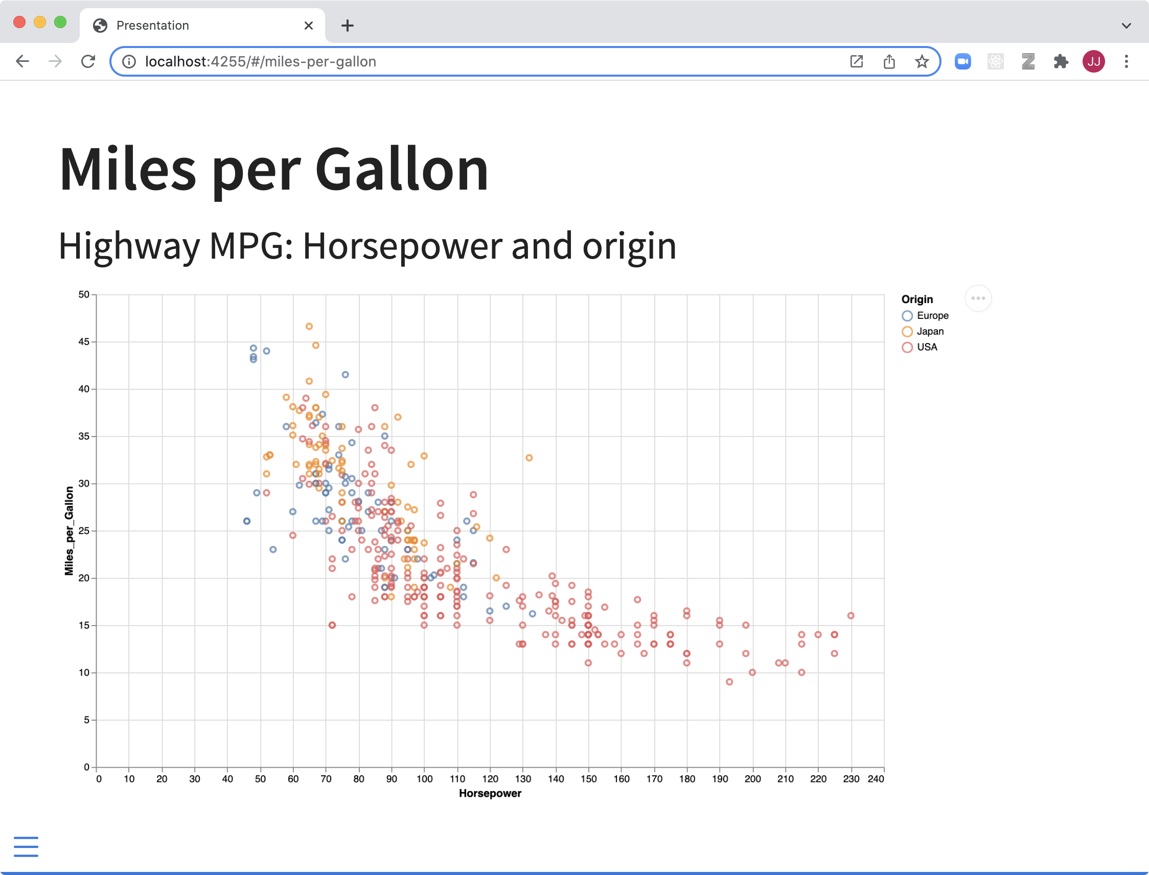 Toggle the slide menu with the menu button (bottom left of slide) to go to other slides and access presentation tools.